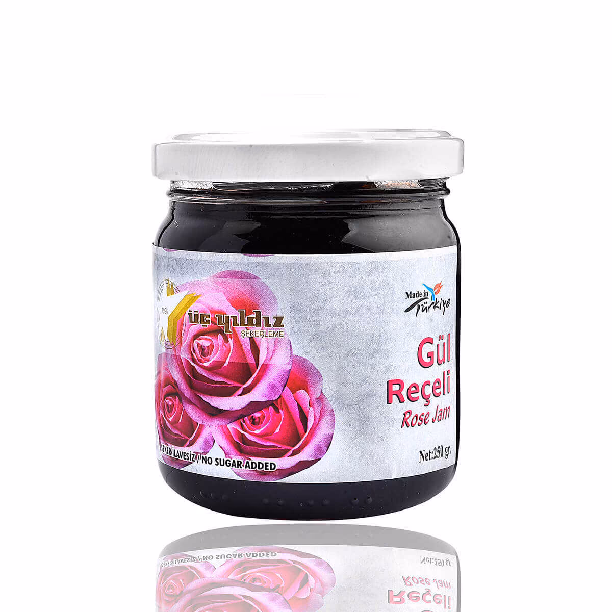 Üç Yıldız Şekerleme’nin doğal lezzetlerinden Şeker İlavesiz Gül Reçeli, ev usulü yapılmıştır. İçeriğinde gül yaprağı, şeker yerine kullanılan doğal elma suyu ve limon suyu bulunmaktadır. Toz şekeri ile yapılan geleneksel reçellere göre glisemik değerleri daha düşüktür. Gülün kendi doğal kokusu ve lezzeti ile kahvaltılarınız renklenecektir. Hiçbir koruyucu madde ve katkı maddesi içermez.